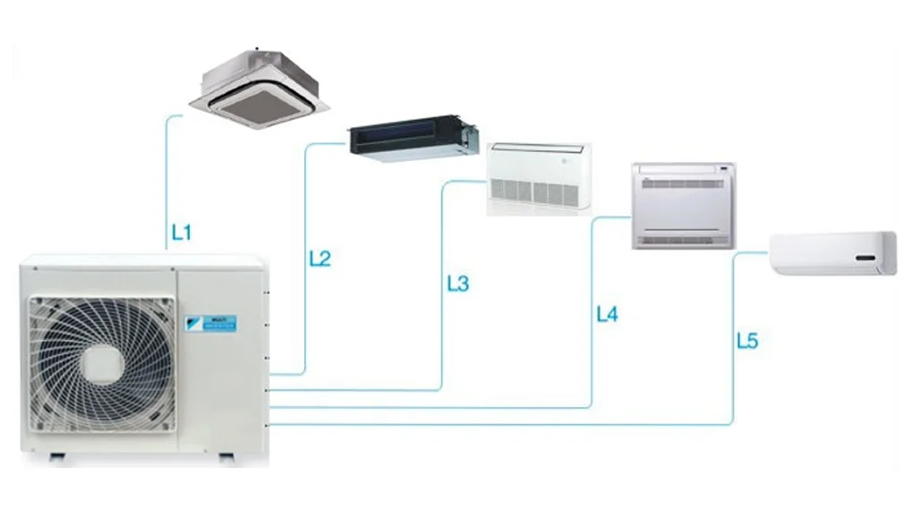 Một dàn nóng 4.0Hp kết hợp tối đa với 5 dàn lạnh (vui lòng liên hệ nhân viên tư vấn để biết thêm về việc kết hợp các dàn lạnh và hệ số đồng thời của máy) |