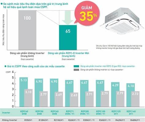 Ngoài ra, bạn cũng cần cân nhắc giữa máy có Inverter hay không. Nếu không gian sử dụng liên tục và muốn tiết kiệm chi phí điện về lâu dài thì nên chọn máy lạnh âm trần Daikin có Inverter.